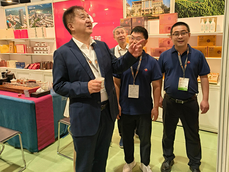 福建省福鼎市人大常委会主任、茶产业发展领导小组常务副组长蔡梅生(左一)莅临公司展位视察